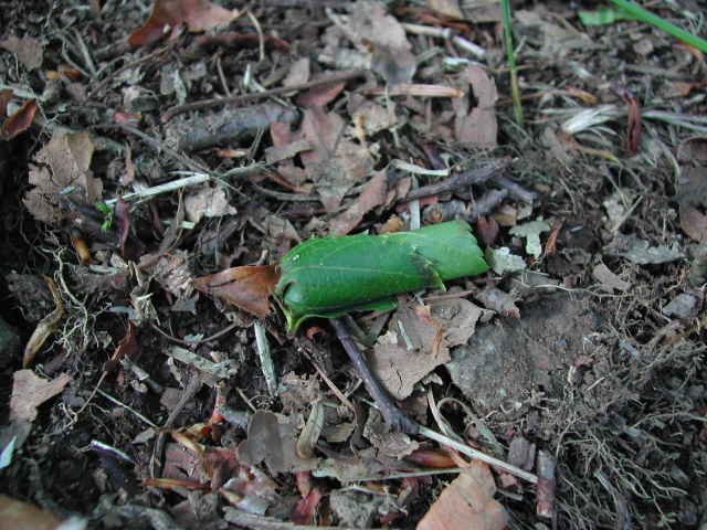 森の地面に,ロールキャベツのように葉がまかれたものか落ちていました。 オトシブミという甲虫が作ったゆりかごです。 |