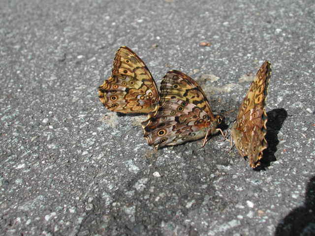 乙女へ行く途中の林道で,アスファルトにちょうちょが