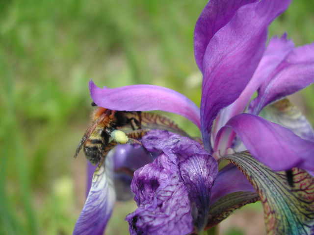 アヤメの花にマルハナバチ(これはミヤママルハナバチ