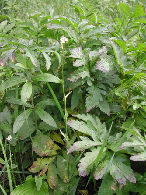 ハンゴンソウの群落です。いわば草花の「なわばり」です。 |
