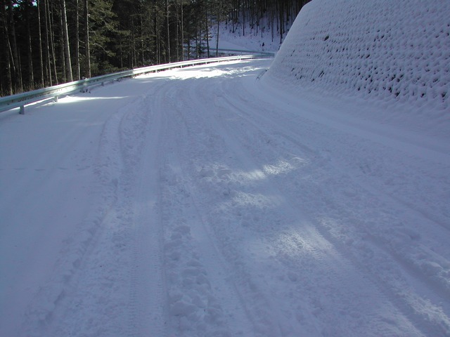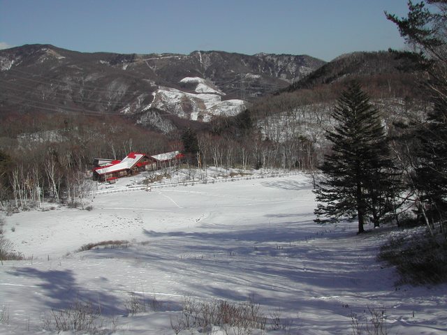 お正月に降った雪がずっとそのまま。 粉雪状態で残っているので,ストックをつくと, なんの抵抗もなく雪の中に入ってしまいます。 |