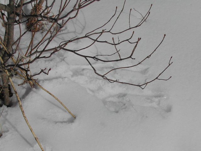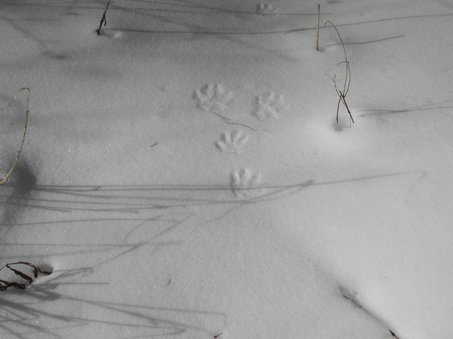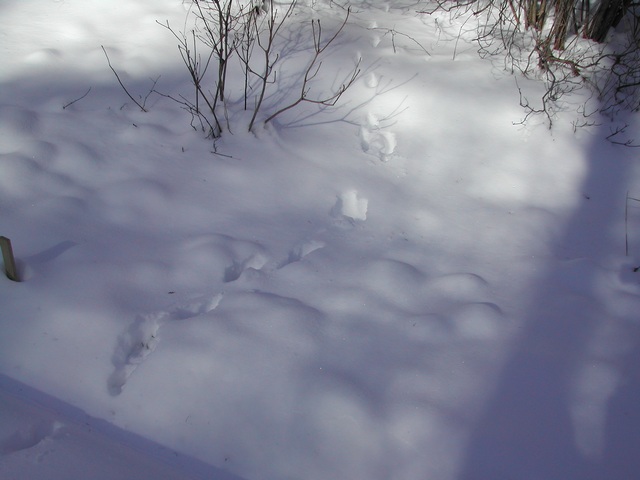 こんなふうに一直線につくのはキツネの足跡です。 |