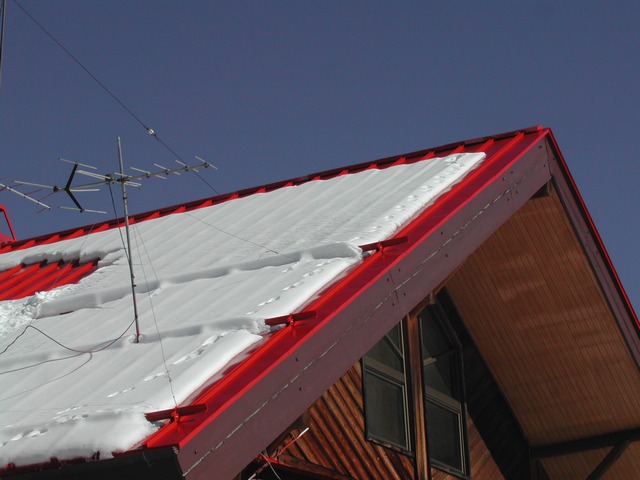 なんとロッジの屋根の上にまで動物の足跡が! |